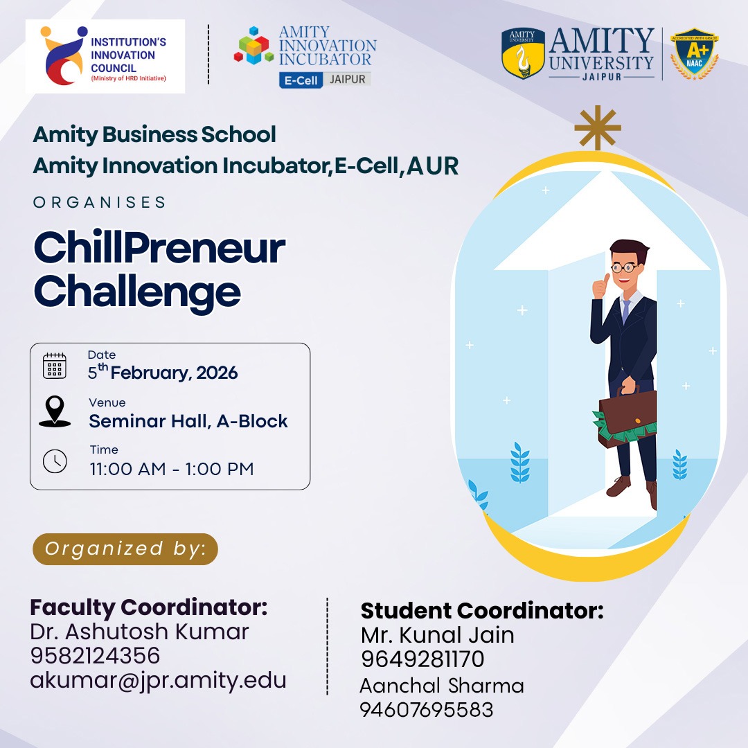 About the Event: The ChillPreneur Challenge, organized by the Amity Business School, is a fun, high-energy entrepreneurship competition that blends creativity with core business principles. Designed to test innovation under constraints, the challenge invites participants to “cook” up profitable business ideas without using traditional resources. Teams will create a no cook recipe that symbolically represents […] |