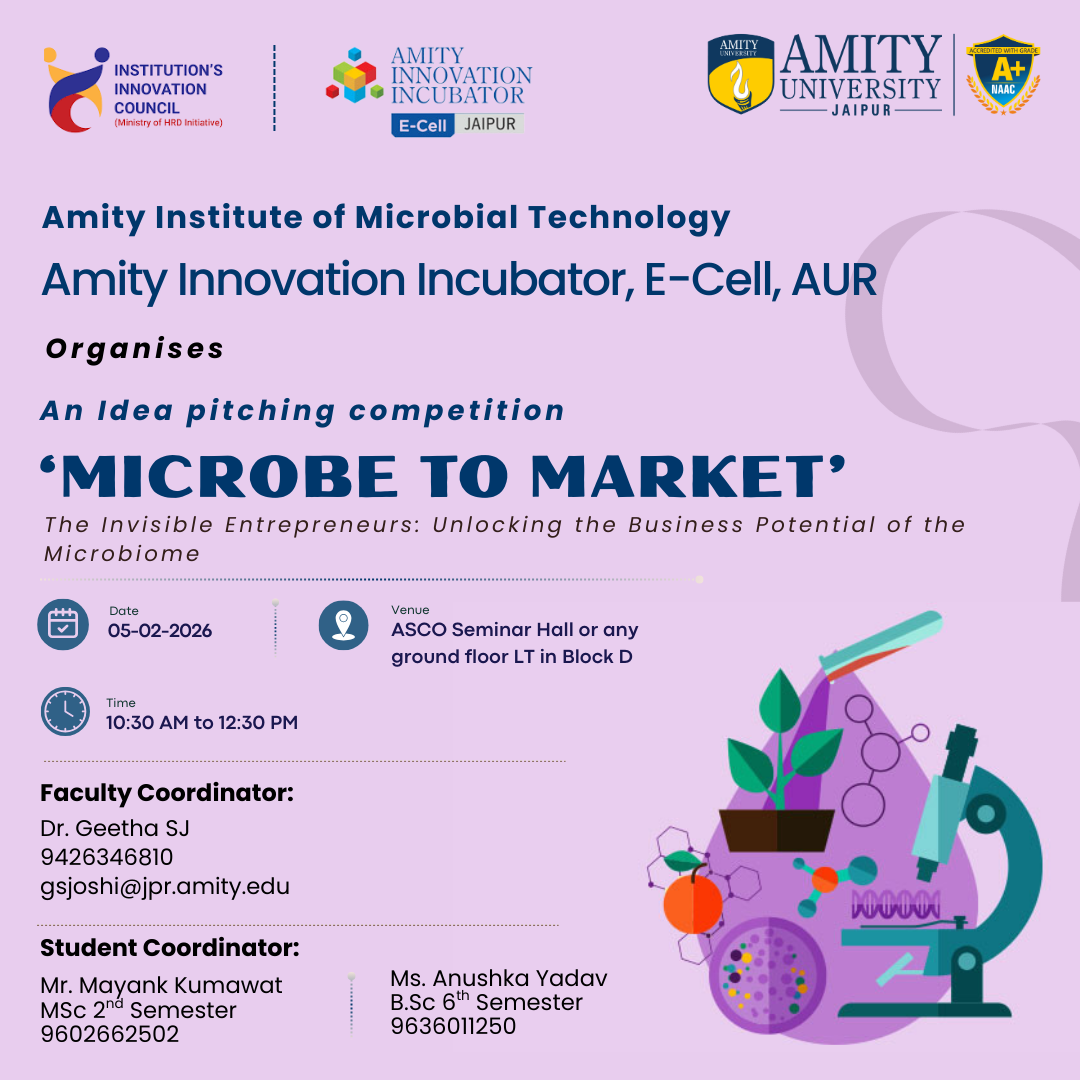 About the Event: “Microbe to Market” is a dynamic departmental idea-pitching event organized by AIMT, AUR, aimed at bridging the gap between microbiological science and entrepreneurial innovation. Centered on the theme “The Invisible Entrepreneurs: Unlocking the Business Potential of the Microbiome", the event invites participants to explore how microorganisms can be transformed into impactful, market […]