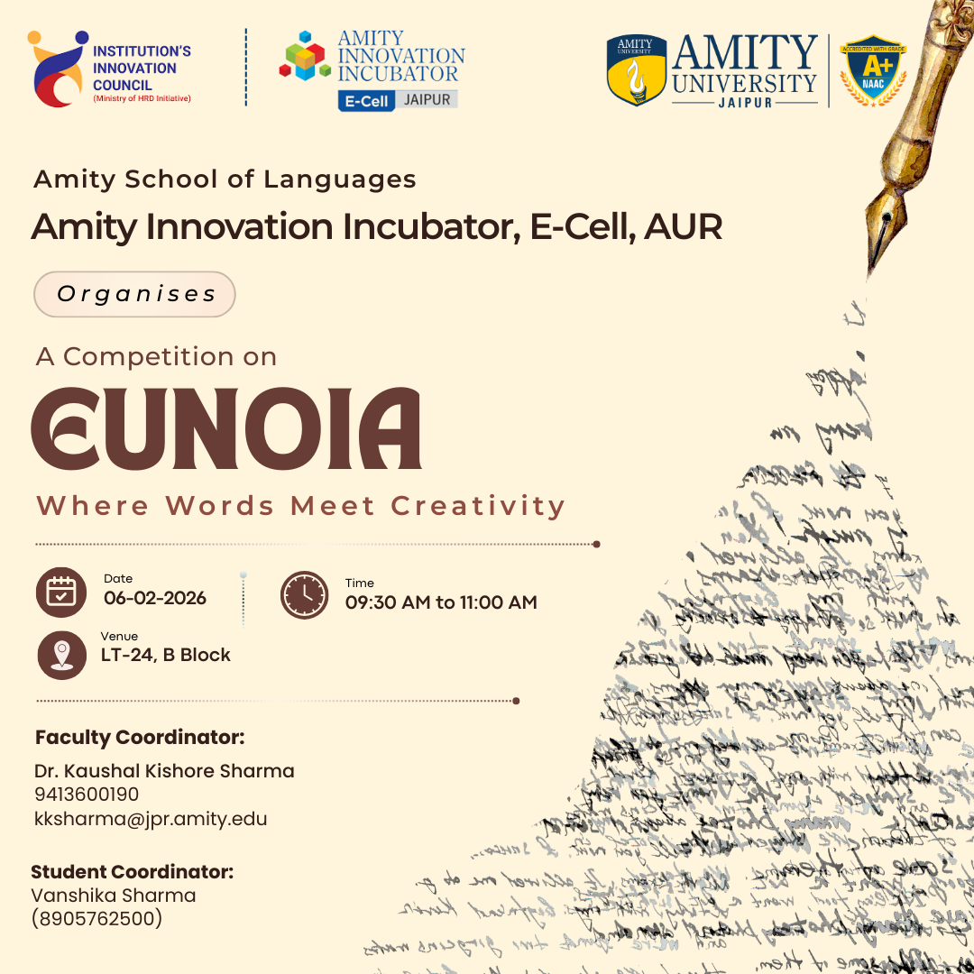 About the Event: EUNOIA, organized by the Amity School of Languages, is a soulful literary and cultural gathering that celebrates the power of words and emotional expression. With the evocative tagline “Echoes of the Heart”, the event provides a मंच for participants to share poetry, anecdotes, personal experiences, and expressive monologues. EUNOIA encourages students to […]